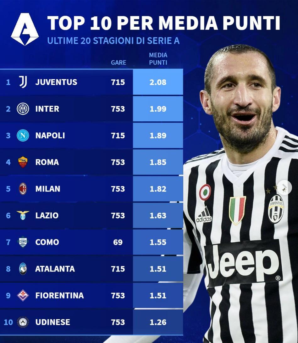 betvictor伟德(中国)唯一官方网站-意甲近20年场均积分:尤文第1,国米第2,米兰仅位列第5